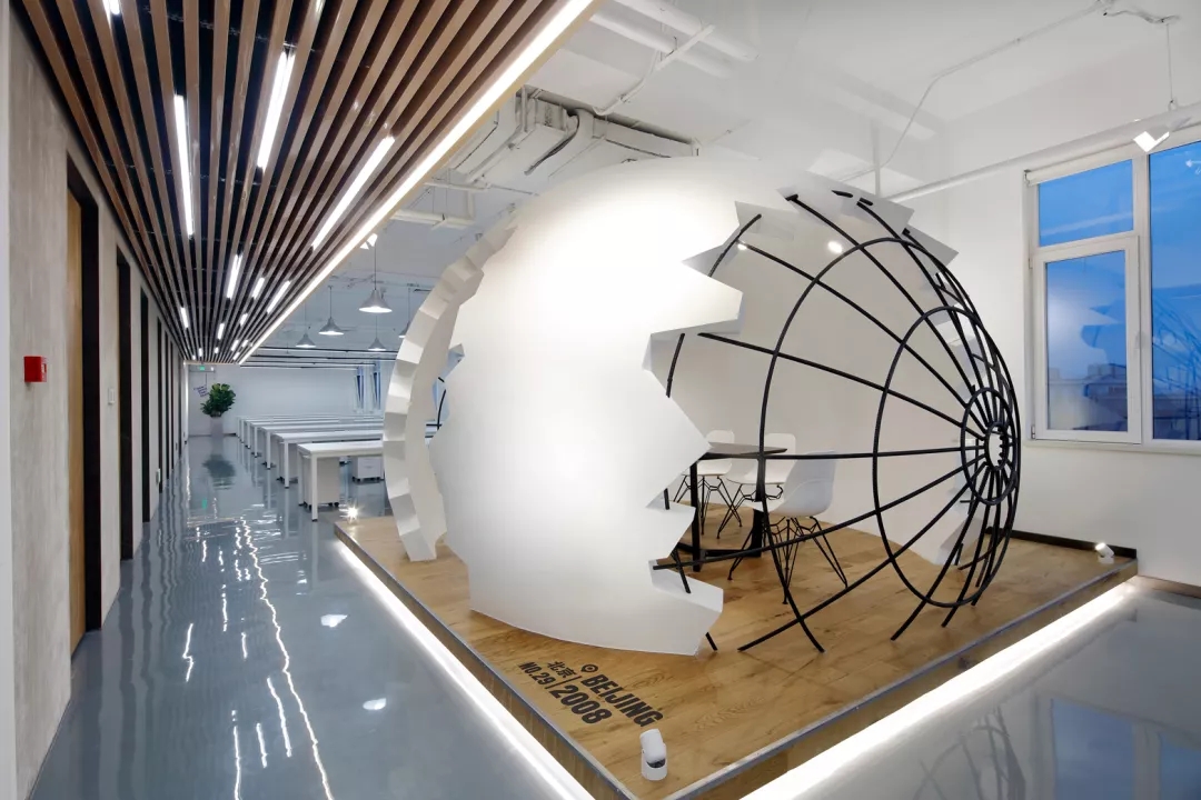 項目位于北京東二環(huán)附近,一棟翻新寫字樓中的三層,樓上兩層為辦公空間,樓下為內部使用的健身房及餐廳。為了給這群成長迅速的健身達人打造一個更能施展拳腳的辦公空間,設計師用“破殼而出“為設計核心表達“自律給我自由”的企業(yè)文化。