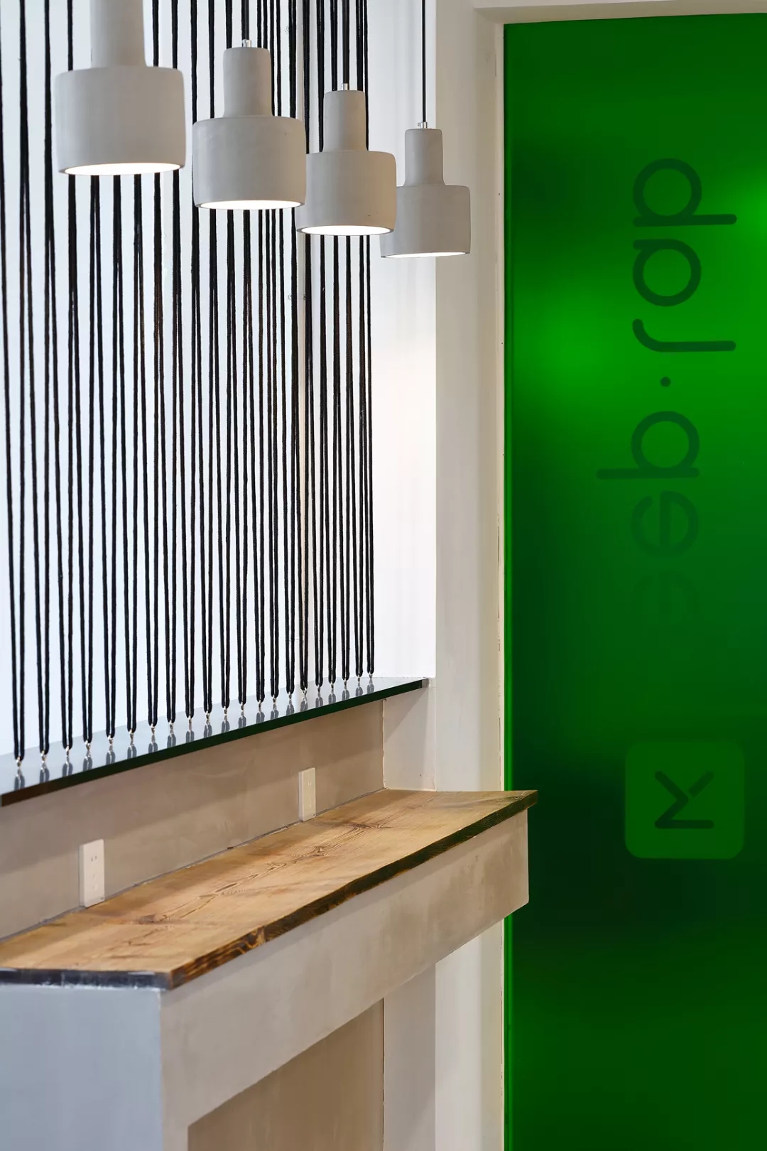 最新完成的整層辦公區(qū)延續(xù)了主體風格,少了花俏的點綴,更多地使用色彩碰撞來提振精神,比如亮橙色開放會議間與品牌VI的臟灰色搭配。也首次嘗試了全白色調的通透會議室,算是對極致風格的小探索。