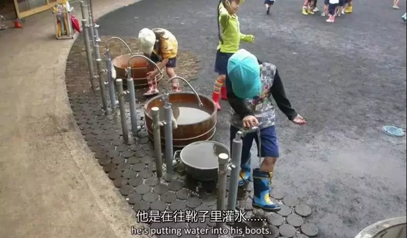 操場上的一排的水龍頭,下面是沒有水池的,洗完后如果不關(guān)水龍頭,水就會濺到小朋友的身上,這樣他們會下意識地關(guān)閉水龍頭,節(jié)約水資源。