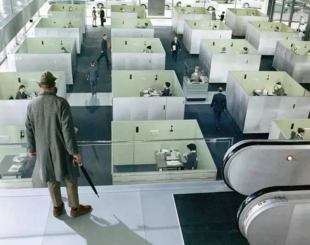 電影《玩樂時間》中的鏡頭,壓抑封閉的辦公空間曾被認(rèn)為是限制創(chuàng)造力的原因