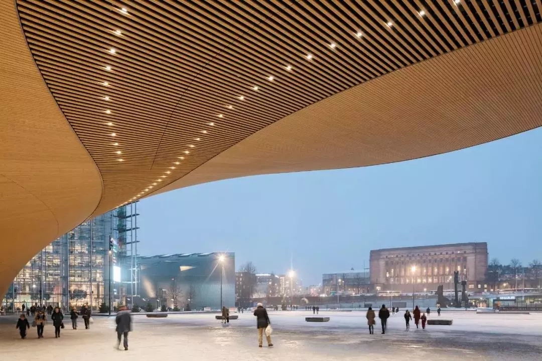 但其實據設計頌歌的主建筑師之一南安迪(Antti Nousjoki)講,靈感的出發(fā)點,還是在于考慮它的功能。作為一個地處赫爾辛基市中心,毗鄰熱鬧商圈、火車站和美術館的公共空間,能夠給市民們帶來什么樣的服務?又能填補哪些缺失的城市設施?