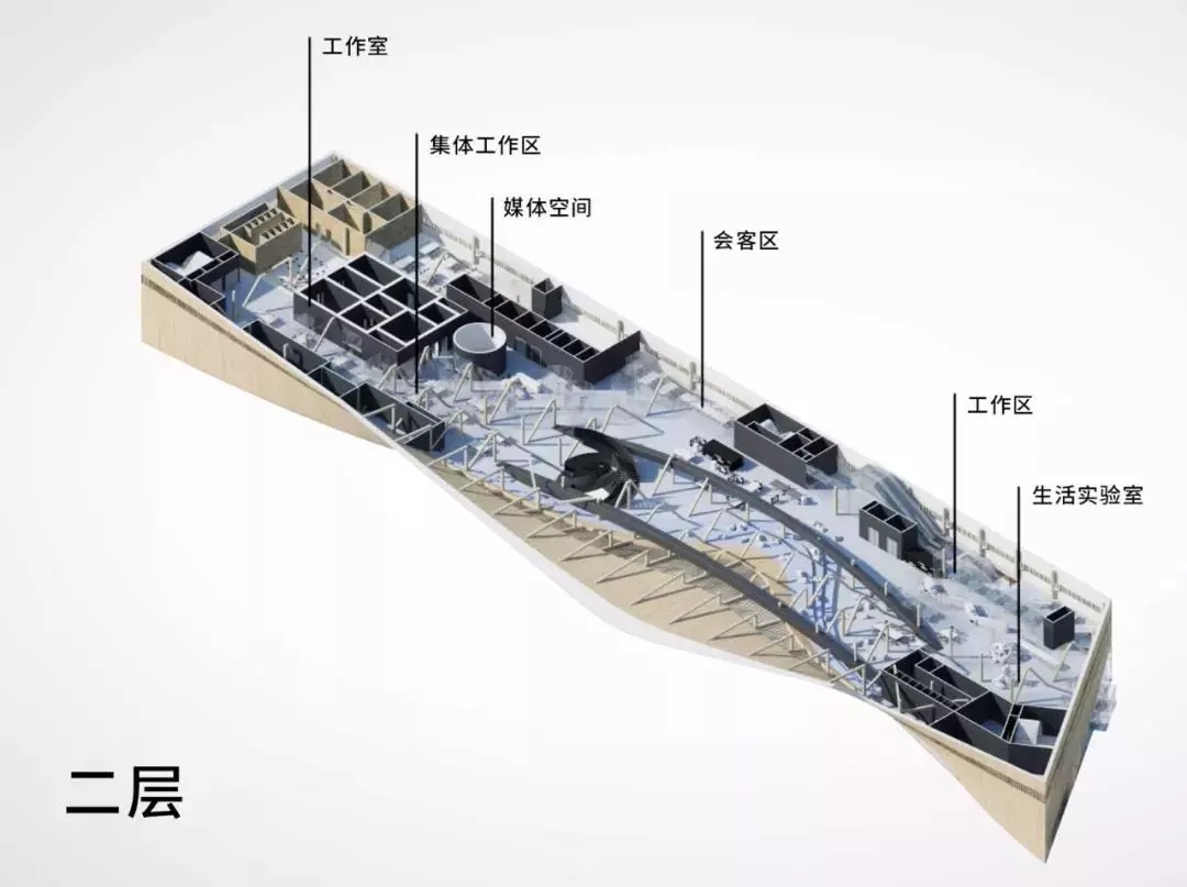 南安迪認為,因為建筑結構打破了常規(guī)的支撐模式,這三層之間并無阻隔,空間流暢,而其中的人和活動也是流動的。