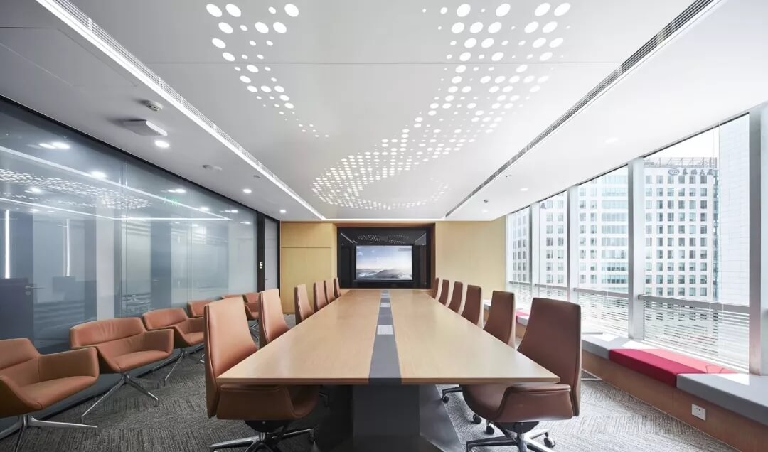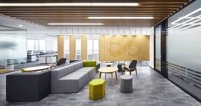 本案標(biāo)準(zhǔn)化辦公區(qū)秉持高效,功能交融,彈性多變的原則,設(shè)置大開敞辦公區(qū),多功能培訓(xùn)室,會議室,經(jīng)理辦公室等空間,聯(lián)結(jié)其他功能配套區(qū)。辦公空間的開敞、通透從普遍客觀立場而言是希望帶來環(huán)境氣氛上的舒適、放松。