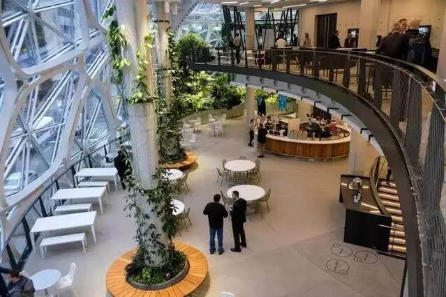 亞馬遜首席園藝師羅·戈里亞多(Ron Gagliardo)說:“我們把工作環(huán)境和自然聯(lián)系起來,讓大家遠離普通辦公桌,在這里看不到辦公桌和小隔間。”