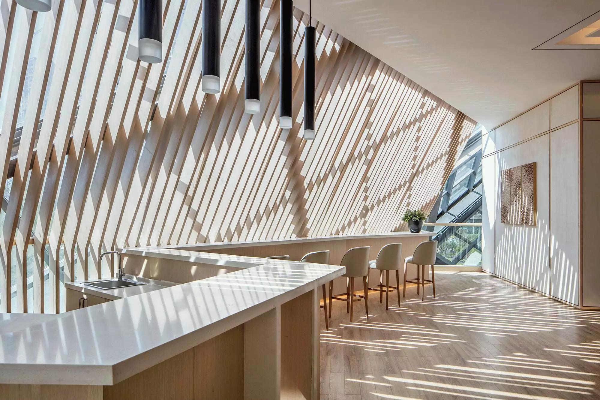 項(xiàng)目原屬昆明聯(lián)想科技城,后由融創(chuàng)地產(chǎn)接盤,他們希望將該建筑打造成為集辦公、商業(yè)、展示等多元化為一體的空間,并使其成為昆明新的城市地標(biāo)建筑。接手本案的主創(chuàng)設(shè)計(jì)師是默存設(shè)計(jì)的季青濤,作為具有建筑師背景的主創(chuàng)設(shè)計(jì)師,從建筑空間的思維從事空間設(shè)計(jì)便成為一種必然。在原有“盒子”空間的內(nèi)部,設(shè)計(jì)師以木結(jié)構(gòu)對空間進(jìn)行了重組和分割。