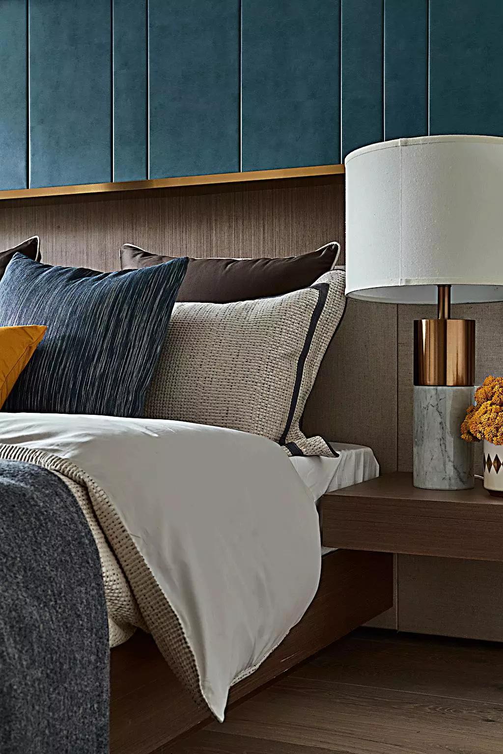 主臥,色彩沉穩(wěn)不失活力,黃銅和皮革造就空間的質(zhì)感,也如同雅痞們的堅(jiān)毅果敢、躊躇滿(mǎn)志。他們沒(méi)有頹廢情緒,一心追求奢侈舒適的生活。